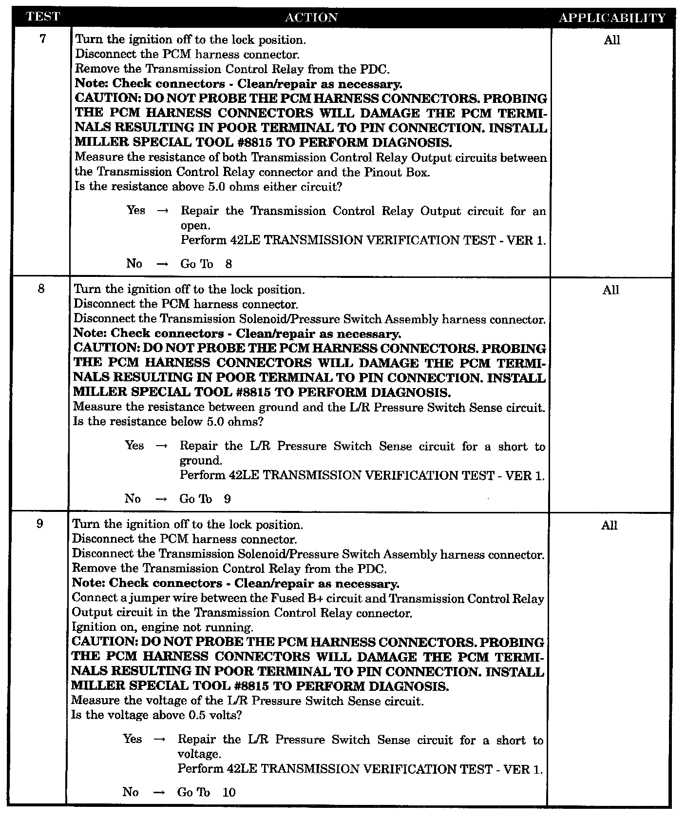 - Transmission control relay output circuit open