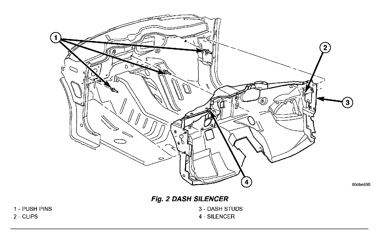1. Remove all parts mounting through the dash silencer,