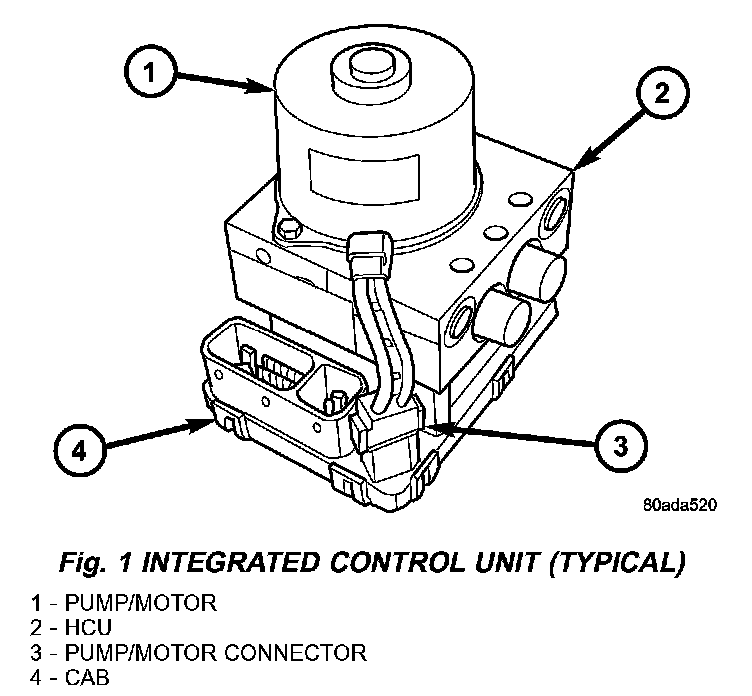 The Controller Antilock Brake (CAB) is a microprocessor-based device which monitors the antilock brake system (ABS) during normal braking and controls it when the vehicle is in an ABS stop. The CAB is mounted to the HCU as part of the integrated control unit (ICU). The CAB uses a 24-way electrical connector on the vehicle wiring harness. The power source for the CAB is through the ignition switch in the RUN or ON position. The CAB is on the PCI bus.