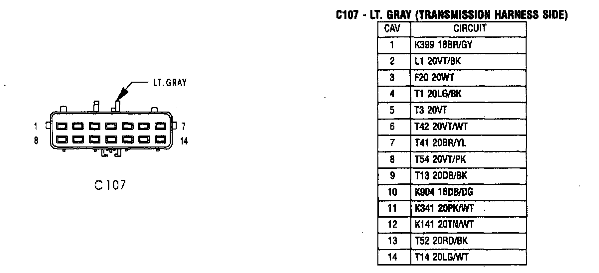 C107 - Lt. Gray (Transmission Harness Side)