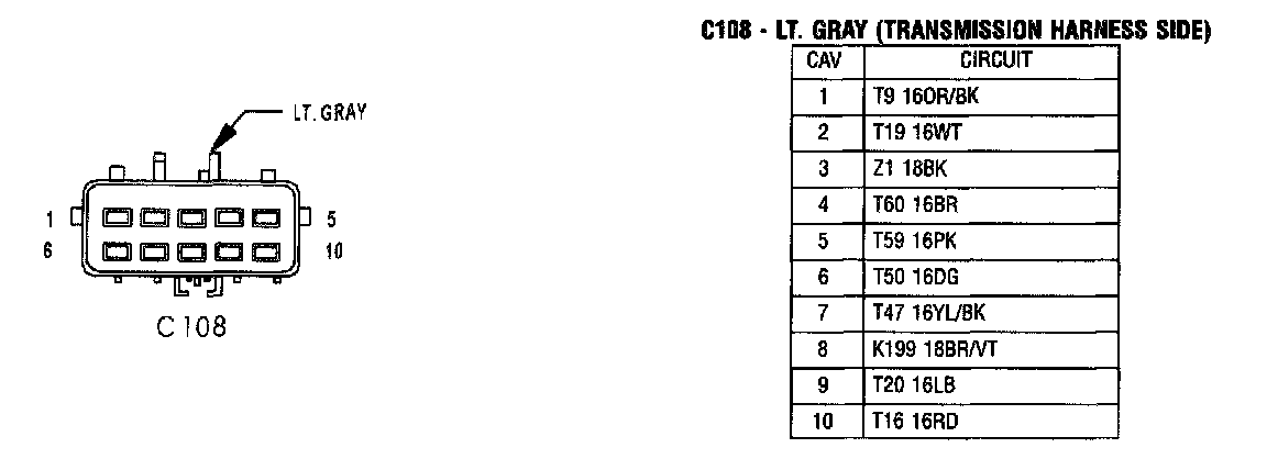 C108 - Lt. Gray (Transmission Harness Side)