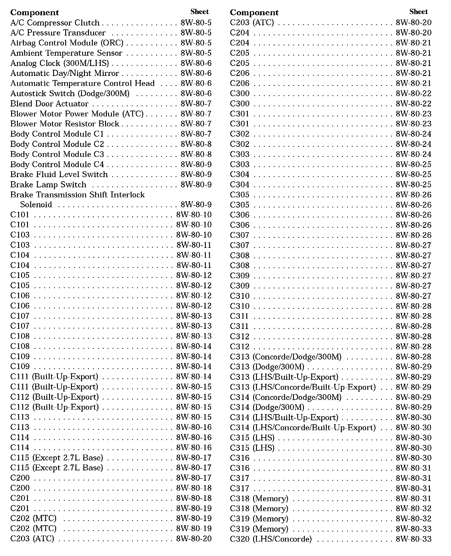 Connector Pin-Outs Component Index (Part 1 Of 4):
