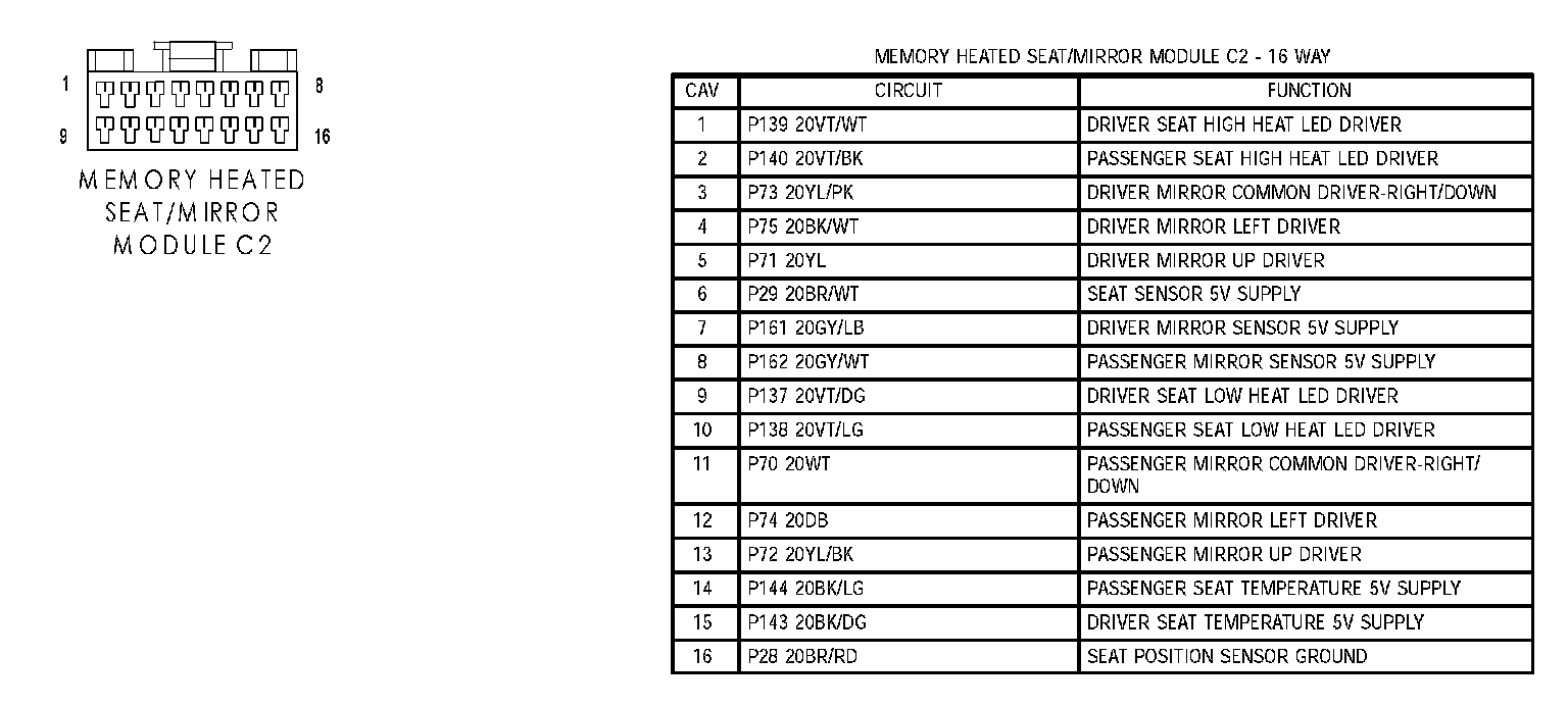 Memory Heated Seat/Mirror Module C2: