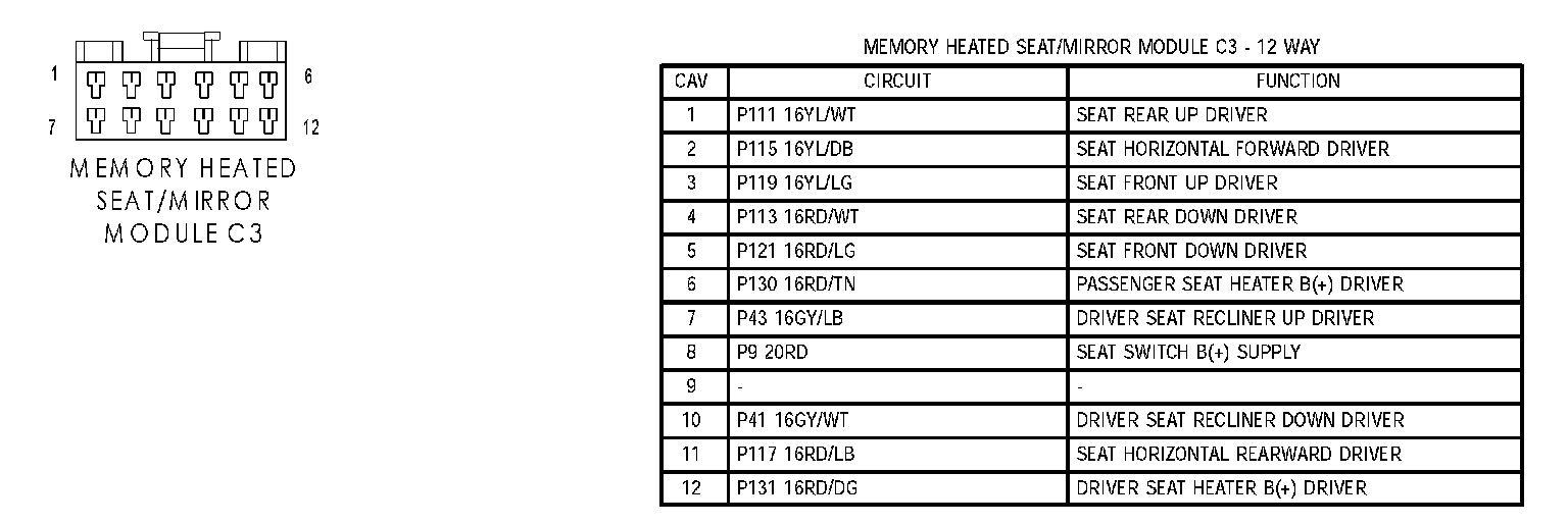 Memory Heated Seat/Mirror Module C3: