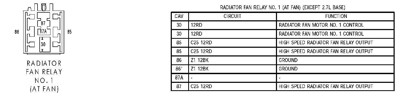 Radiator Fan Relay No.1 (At Fan) (Except 2.7L Base):