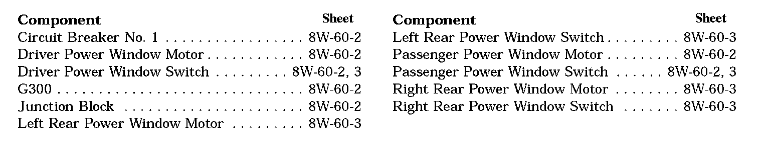 Power Windows Component Index: