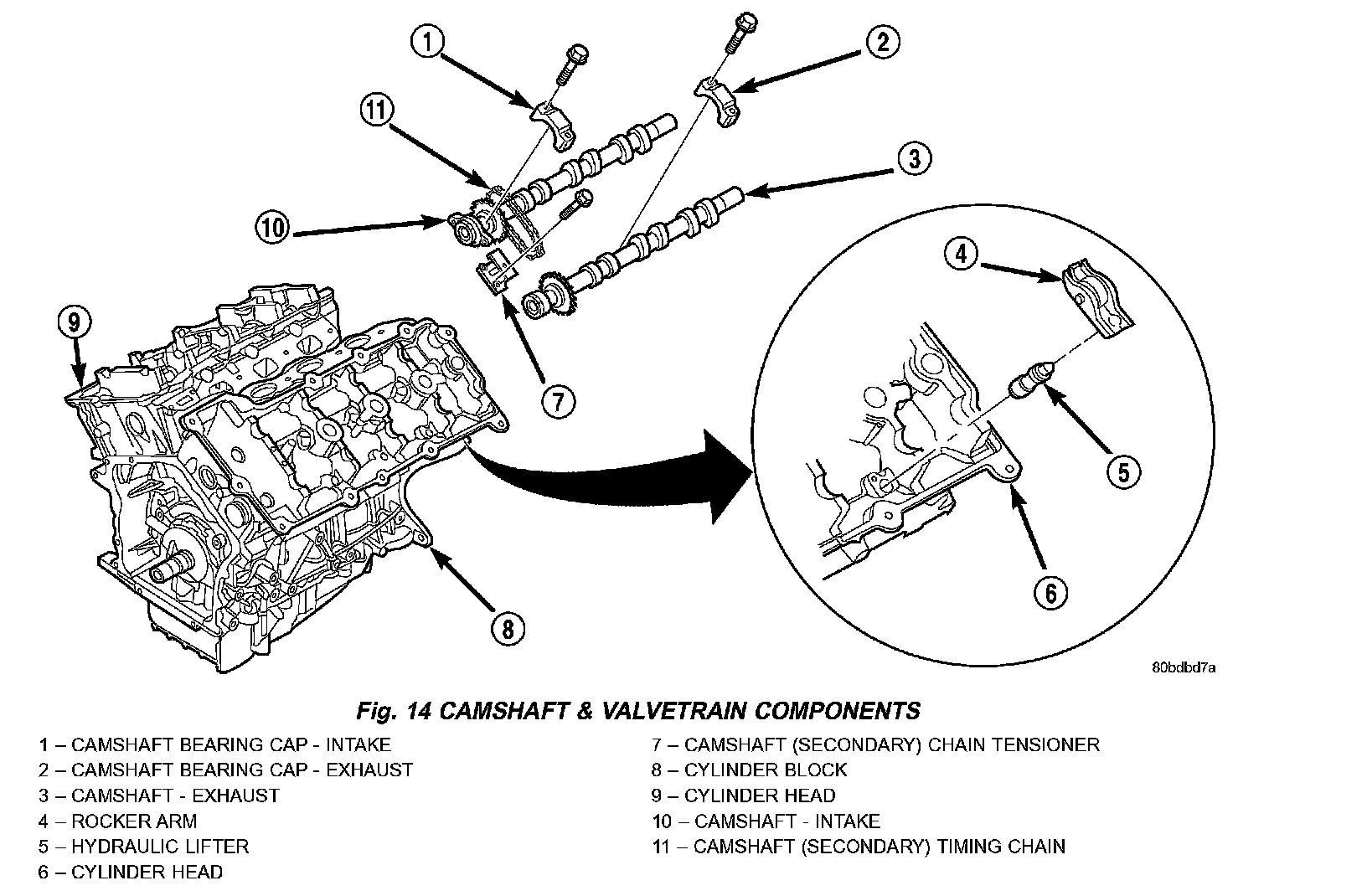 11. Remove camshafts and valve train components from cylinder head (Fig. 14). Note component locations for re-installation in original locations.