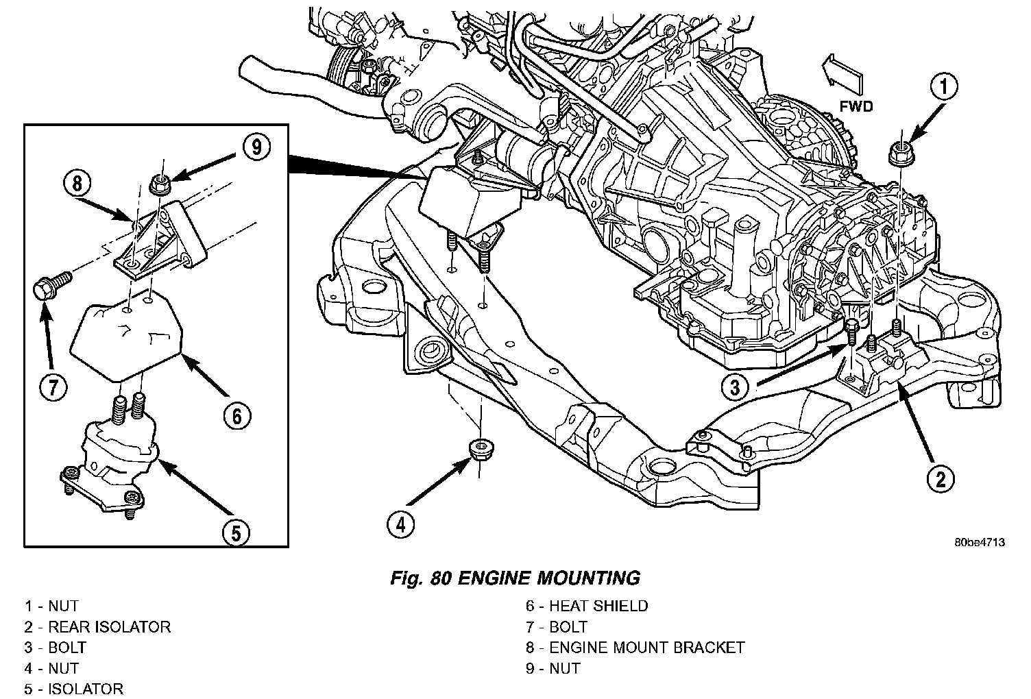 4. Tighten the isolator to frame nuts to 61 Nm (45 ft. lbs.) (Fig. 80).