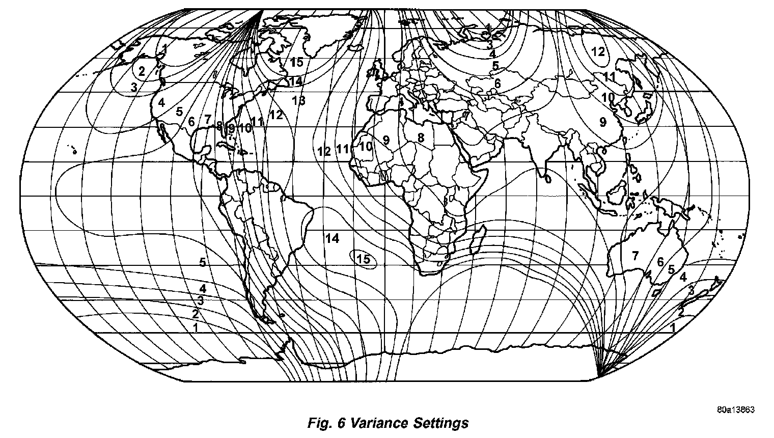 STANDARD PROCEDURE - COMPASS VARIATION ADJUSTMENTCompass variance, also known as magnetic declination, is the difference in angle between magnetic north and true geographic north. In some geographic locations, the difference between magnetic and geographic north is great enough to cause the compass to give false readings. If this problem occurs, the compass variance setting may need to be changed.