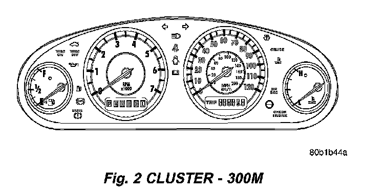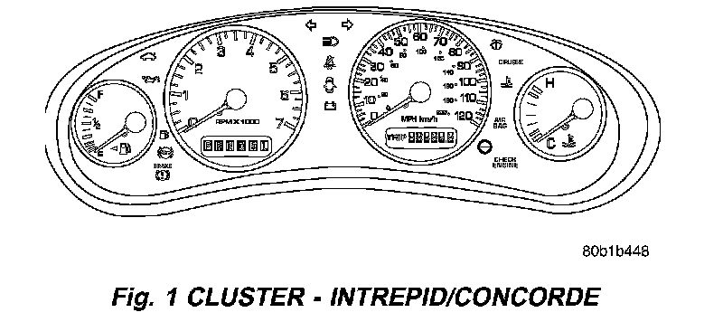 The Instrument Cluster for the Intrepid and Concorde (Fig. 1) are almost identical. The gauge and warning lamp location and functionality are identical. The difference being, the Intrepid has white gauges with black numbers, and the Concorde has black gauges with white numbers and chrome rings around the gauges.