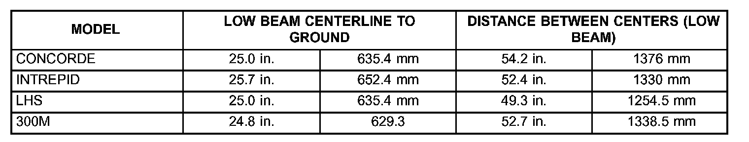 HEADLAMP UNIT ALIGNMENT PREPARATIONThe vehicle headlamp units are equipped with a bubble level to aid up/down headlamp unit alignment. The bubble level is used to assist headlamp unit alignment when compensating for vehicle ride height changes due to heavy luggage compartment loads or vehicle ride height changes. The vehicle should always be on a level surface when headlamp unit alignments are checked or changed. Headlamp unit alignment should always be first attempted by using the bubble level.