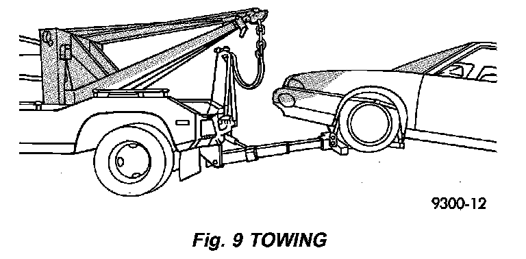 Always tow vehicle with front wheels off the ground as shown (Fig. 9).