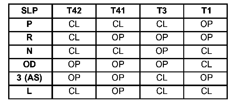 The Transmission Range Sensor (TRS) (Fig. 402) communicates Shift Lever Position (SLP) to the PCM as a combination of open and closed switches. Each shift lever position has an assigned combination of switch states (open/closed) that the PCM receives from four sense circuits. The PCM interprets this information and determines the appropriate transaxle gear position and shift schedule.