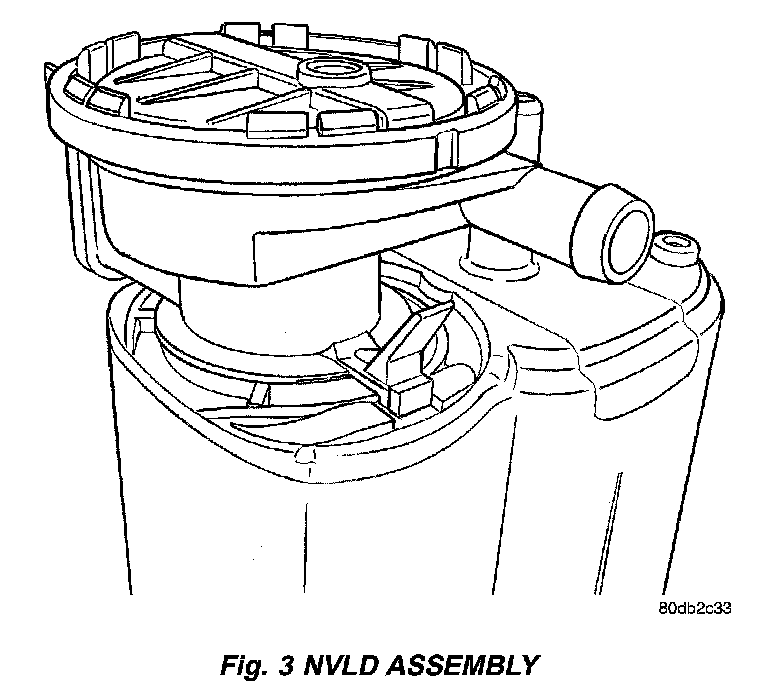 The normally closed valve in the NVLD is intended to maintain the seal on the evaporative system during the engine OFF condition. If vacuum in the evaporative system exceeds 3" to 6" H2O (0.75 to 1.5 KPA), the valve will be pulled off the seat, opening the seal. This will protect the system from excessive vacuum as well as allowing sufficient purge flow in the event that the solenoid was to become inoperative.