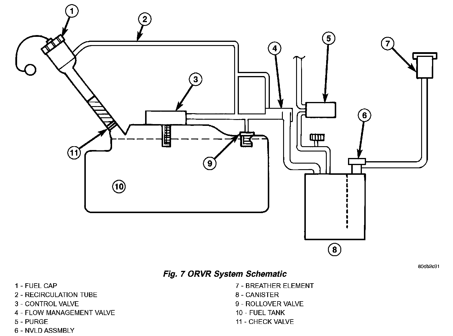Onboard Refueling Vapor Recovery (ORVR) System Schematic and components.