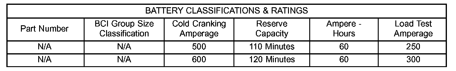 The battery Group Size number, the Cold Cranking Amperage (CCA) rating, and the Reserve Capacity (RC) rating or Ampere-Hours (AH) rating can be found on the original equipment battery label. Be certain that a replacement battery has the correct Group Size number, as well as CCA, and RC or AH ratings that equal or exceed the original equipment specification for the vehicle being serviced. Battery sizes and ratings are discussed in more detail below.