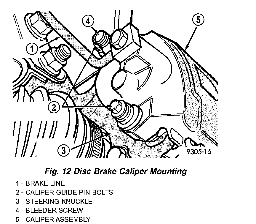 9. Install front brake caliper on steering knuckle. Install the caliper to steering knuckle attaching bolts and tighten them to a torque of 22 Nm (192 inch lbs.).