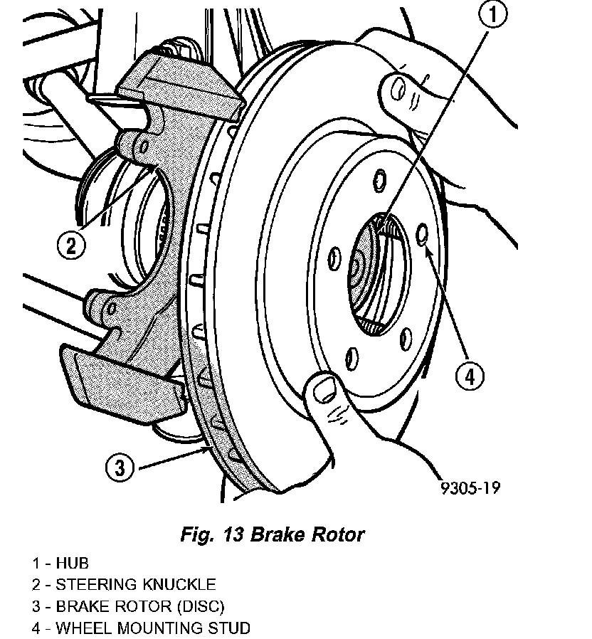 - When installing hub and bearing assembly into steering knuckle, be careful not to damage the Finger disc on hub and bearing assembly. If flinger disc becomes damaged, hub and bearing assembly MUST not be used and MUST be replaced with a new hub and bearing assembly.