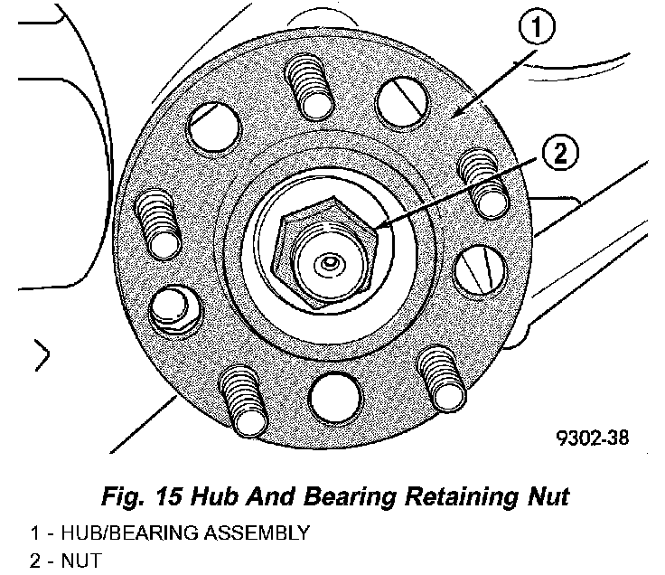 CAUTION: The hub and bearing axle retaining nut is a prevailing torque nut and cannot be reused. A NEW retaining nut MUST be used.