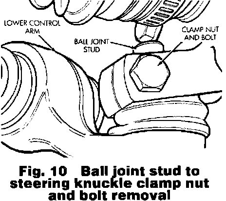 Fig. 10 Ball Joint Stud To Steering Knuckle Clamp Nut And Bolt Removal: