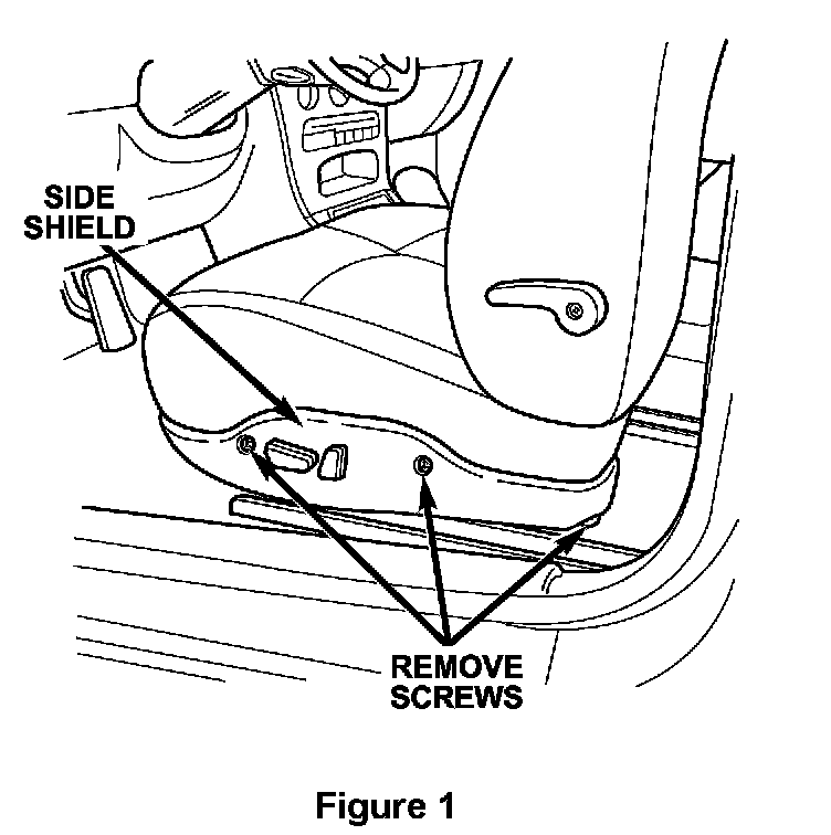 3. Remove the two side screws (power only) and the rear screw (all) from the seat side shield and then rotate the shield away from the rear of the seat (Figure 1).