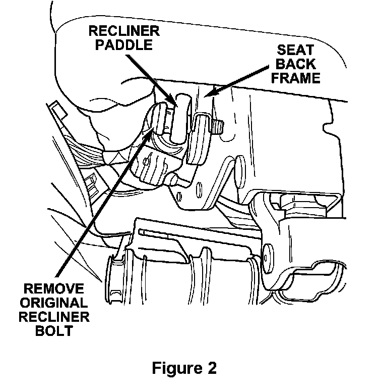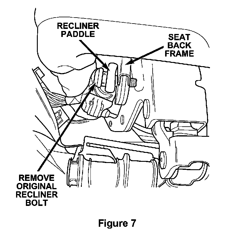 10. Remove the outboard recliner paddle-to-seat back frame bolt (Figure 7).