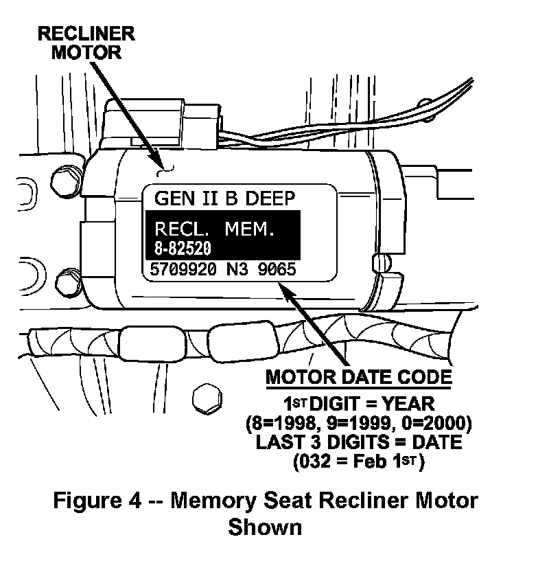 7. Inspect the date code on one Gof the seat adjuster motors (Figure 4) to determine the correct repair package part number as some seat adjuster assemblies may have been previously replaced.