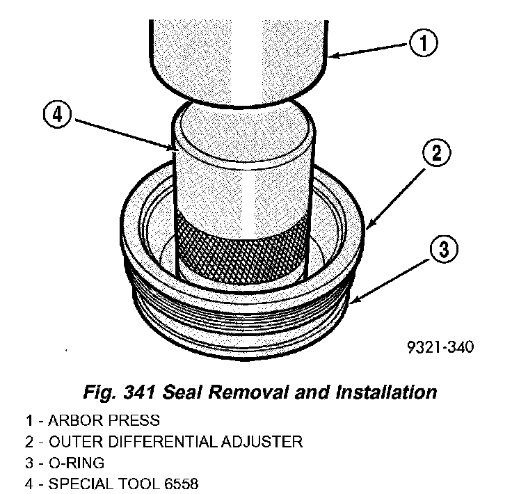 6. Use special tool 6558 to remove old seal and install new seal (Fig. 341).