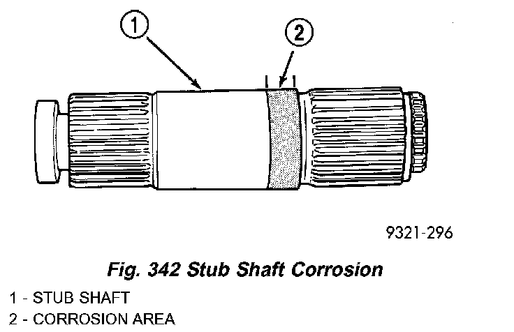 7. Inspect stub shaft for corrosion (Fig. 342). If corrosion exists, wrap stub shaft with wax paper and install seal protector over wax paper.
