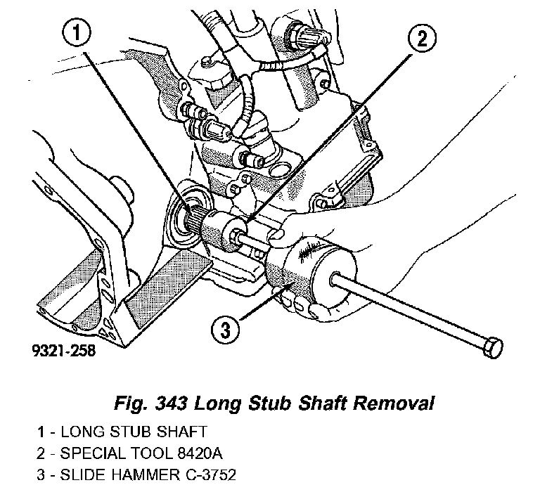 4. Remove long stub shaft from transaxle (Fig. 343).