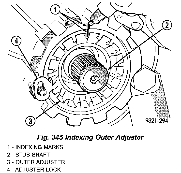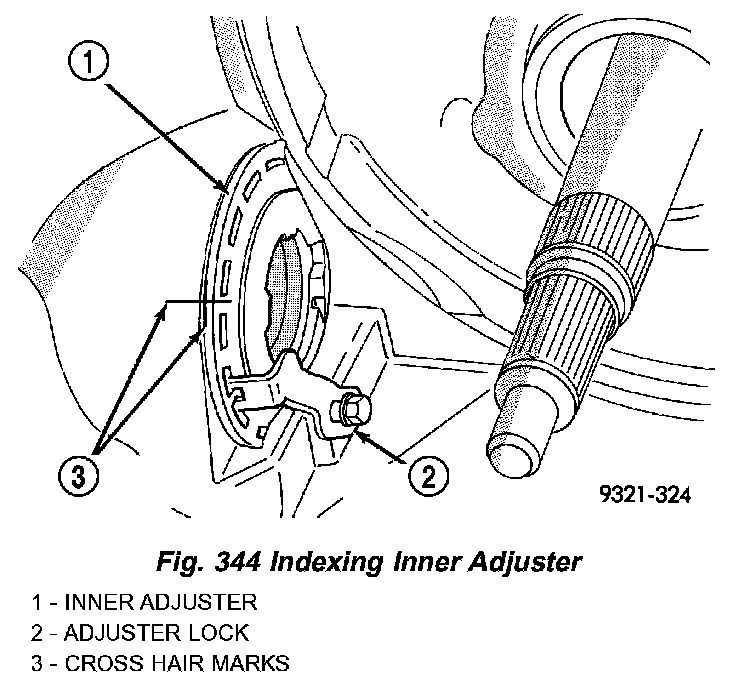 5. Index the inner differential adjuster with a cross hair as shown in (Fig. 344).