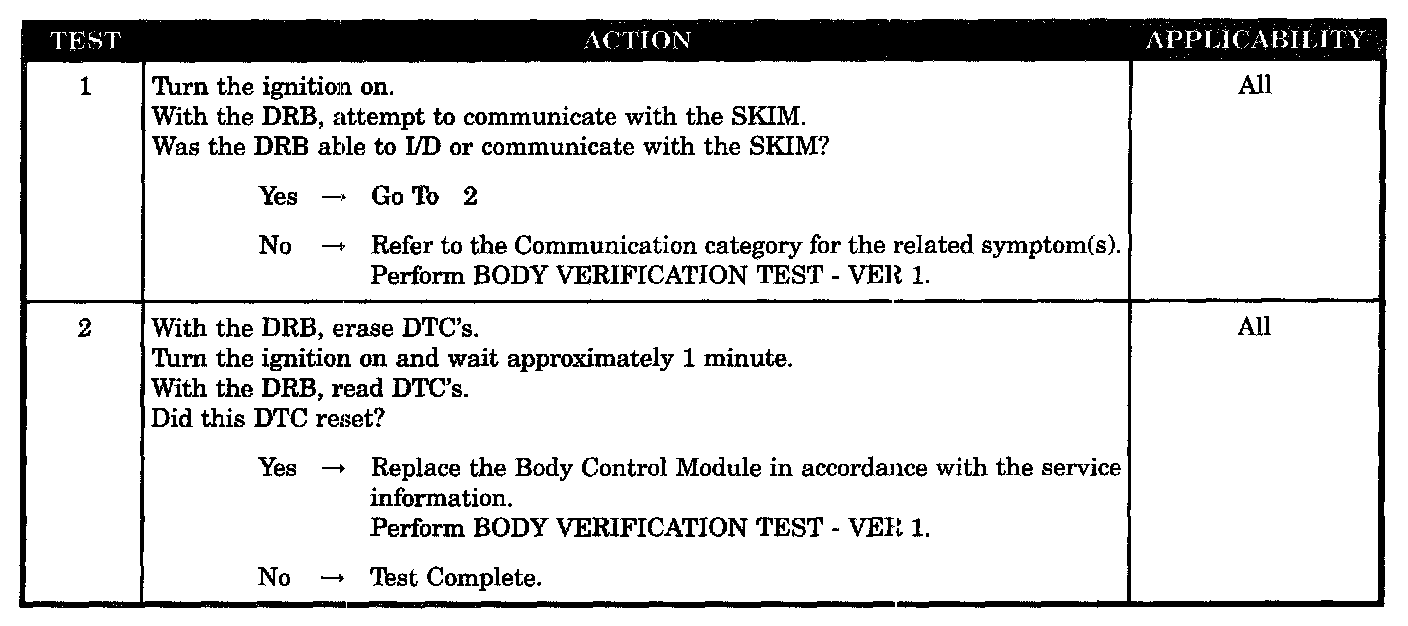 The BCM does not receive any messages from the Sentry Key Immobilize Module (SKIM) for at least 12 seconds.