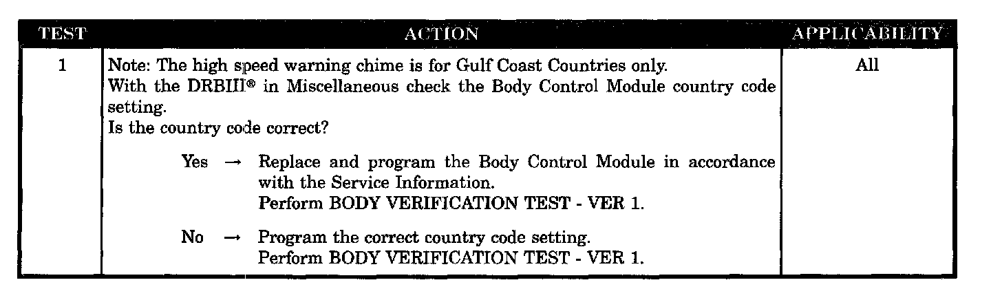 Vehicle Speed Warning Chime Problem