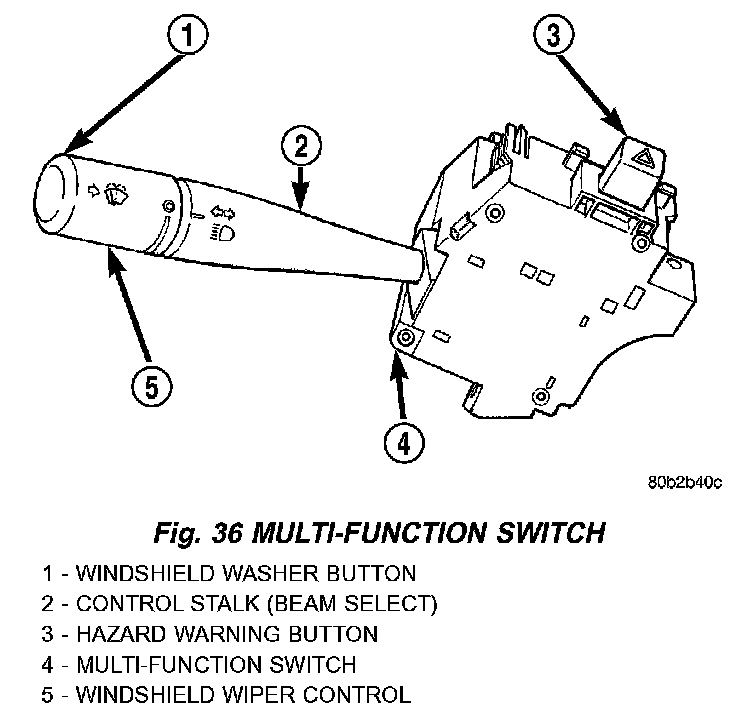 The turn signals are part of the multi-function switch (Fig. 36) which contains: