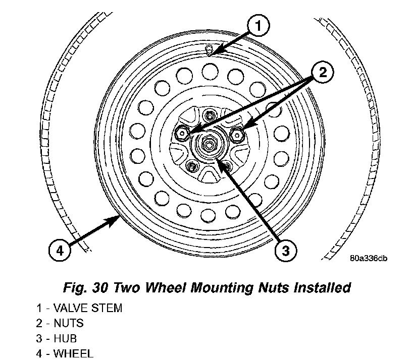 REMOVAL1. Noting the location of the valve stem in relationship to the wheel mounting nuts, remove the three wheel mounting nuts securing the wheel cover to the wheel and hub.