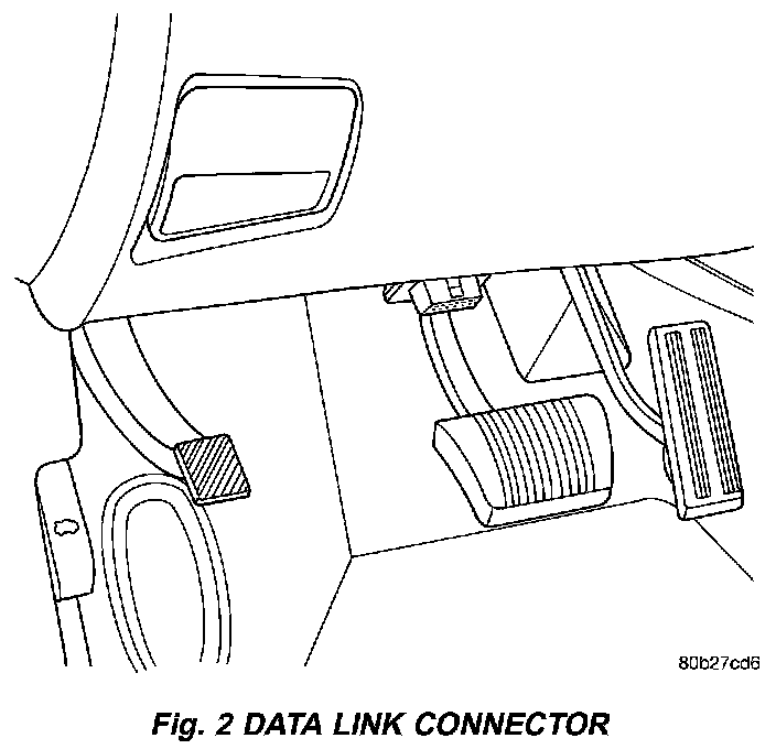 The data link connector (diagnostic connector) links the DRB scan tool with the Powertrain Control Module (PCM). Refer to On-Board Diagnostics.