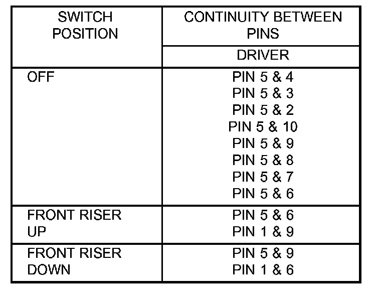 Driver Seat Switch Continuity Test Table (Part 2 Of 2):