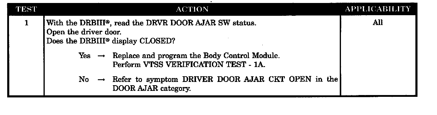 Check DRBIII for driver door ajar response