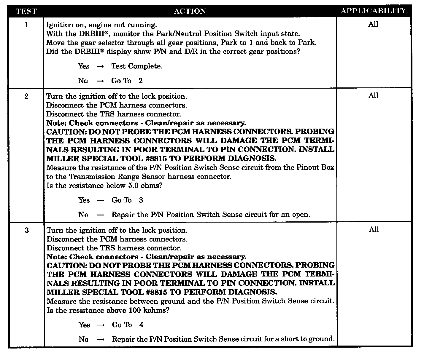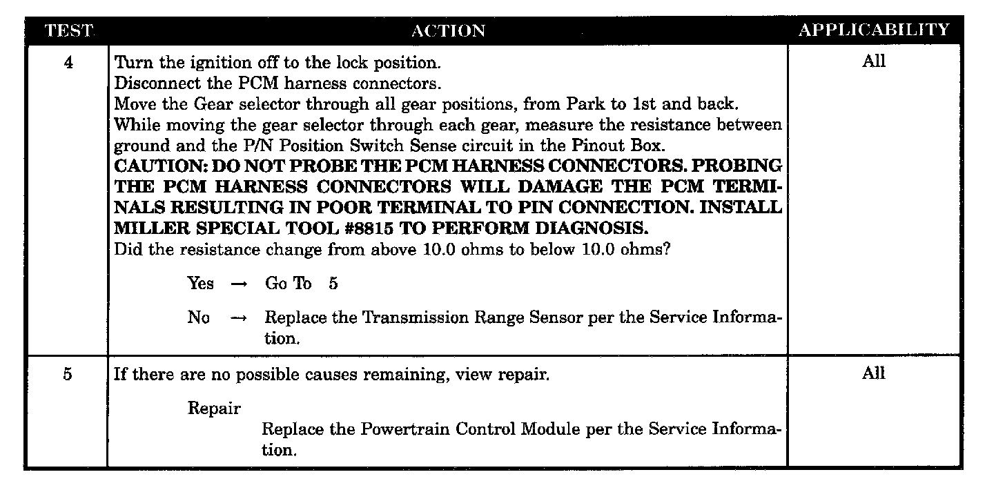 Checking Park/Neutral Switch Operation