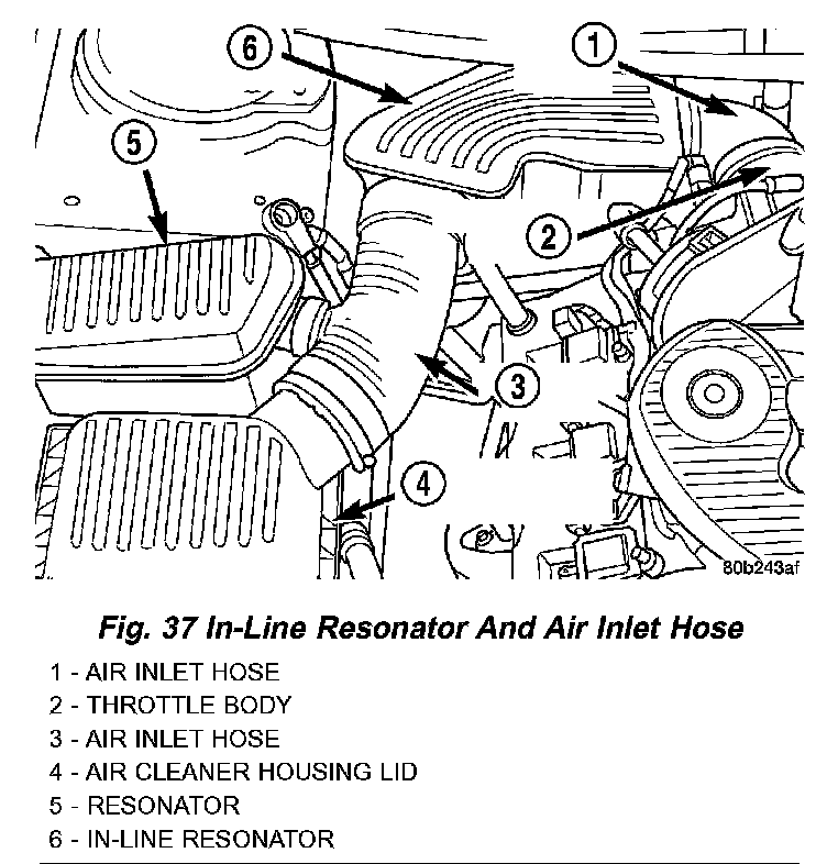 6. Remove the in-line resonator and inlet hose from the throttle body and air let hose coming from the lid of the air cleaner housing.