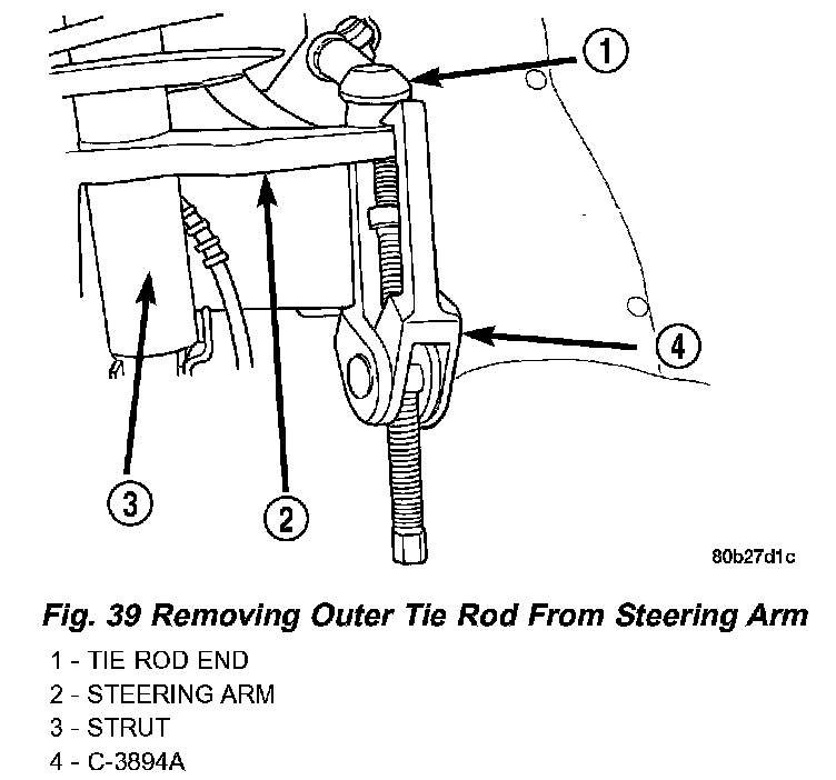 10. Remove the tie rod end from the steering arm of the strut using Puller, Special Tool C-3894-A.
