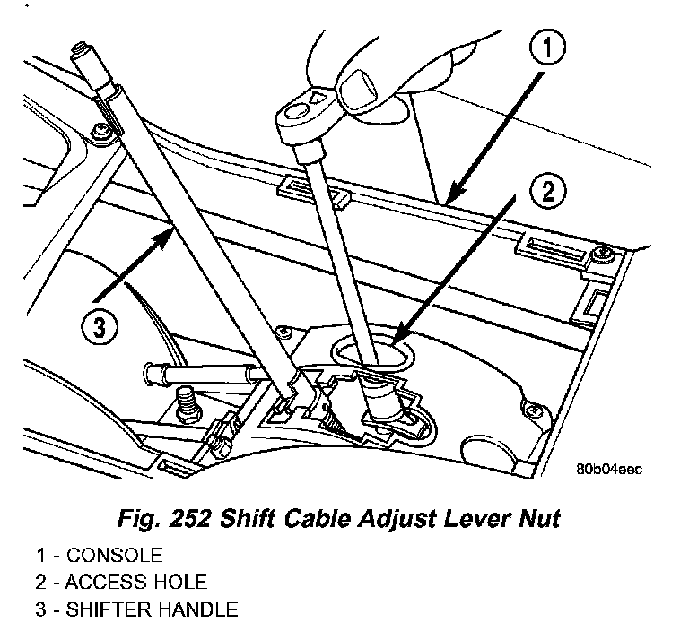 6. Disconnect shifter cable from cable attach stud (pin) (Fig. 253).
