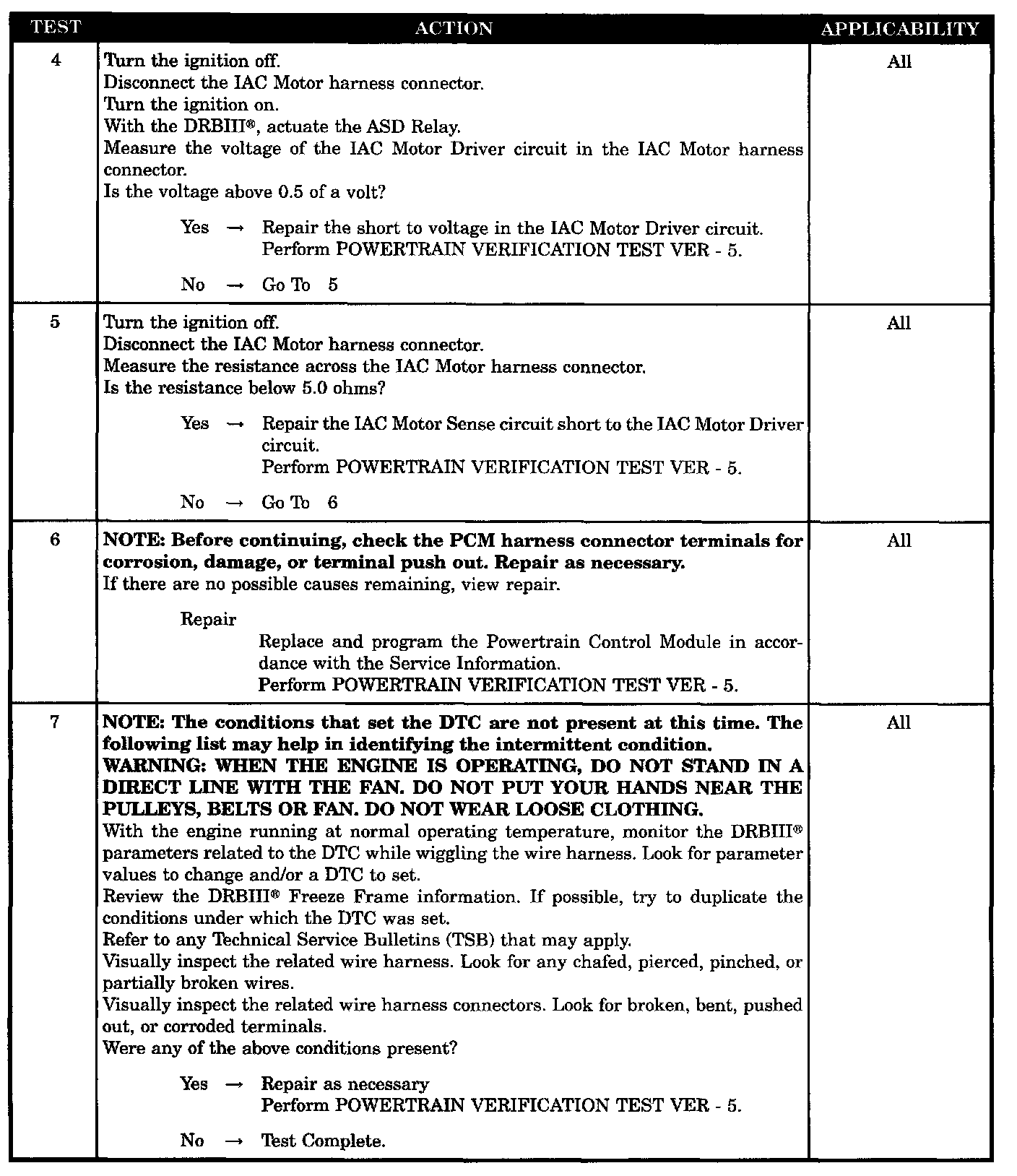 - IAC motor sense circuit shorted to IAC motor driver circuit