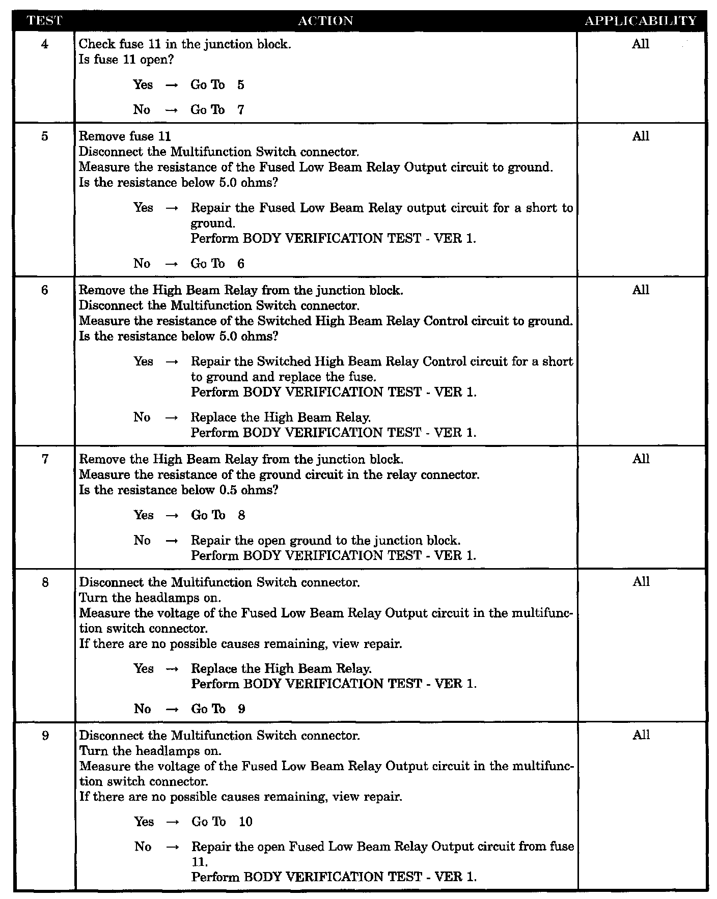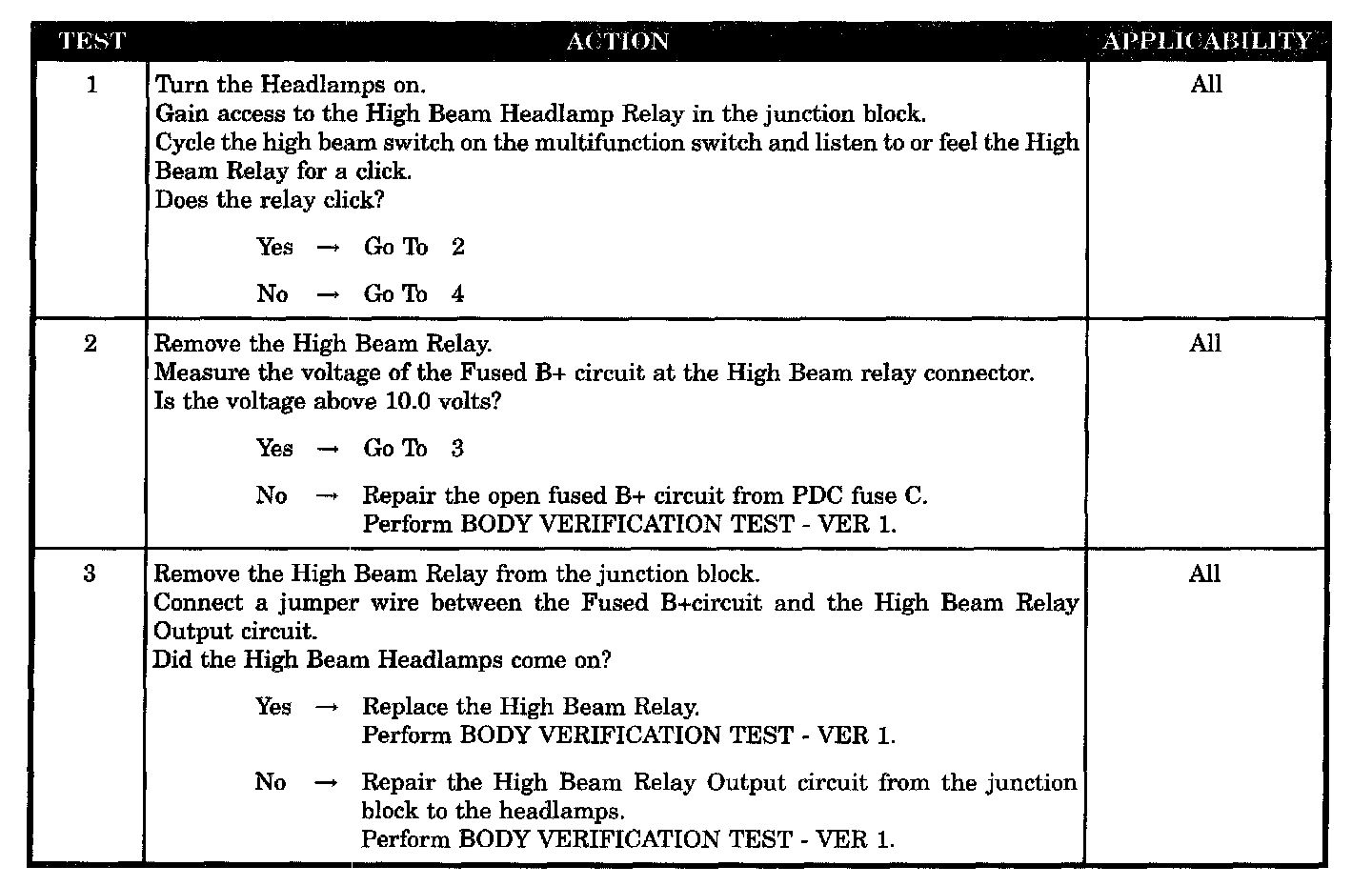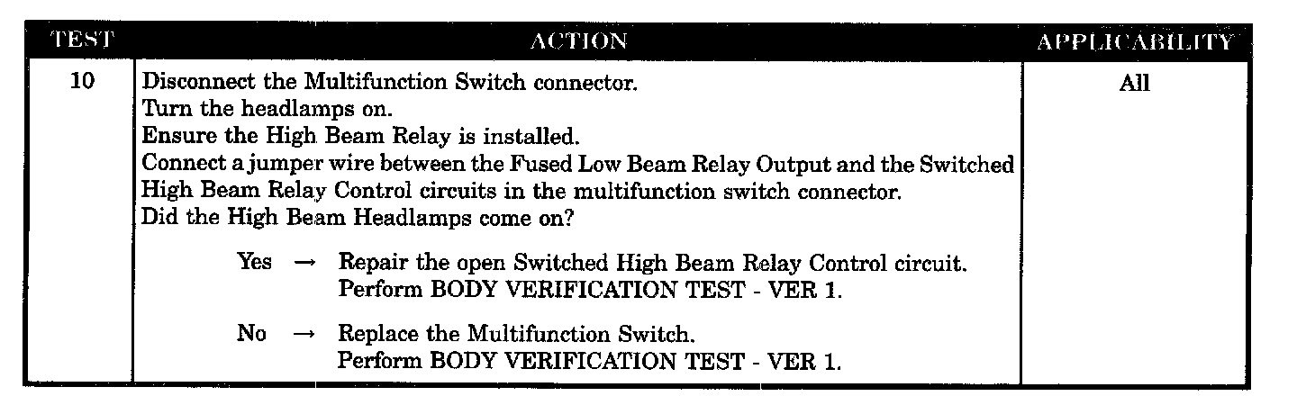 HIGH BEAM HEADLAMPS WILL NOT TURN ON