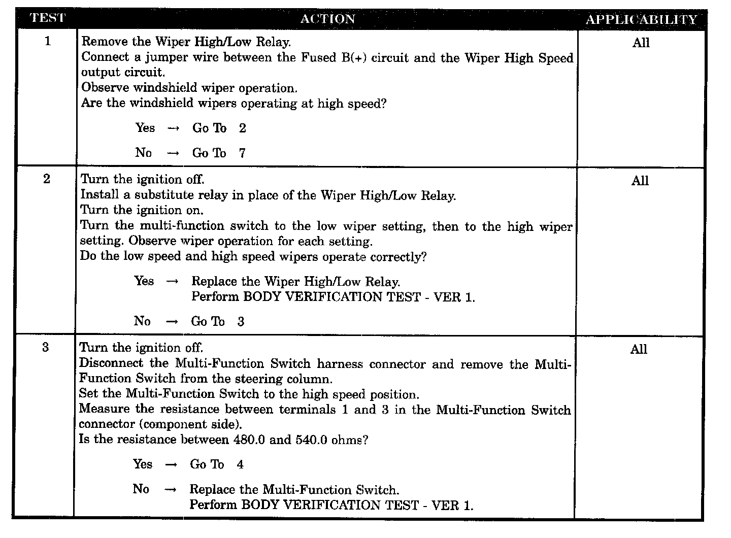 - Wiper high/low relay control circuit open