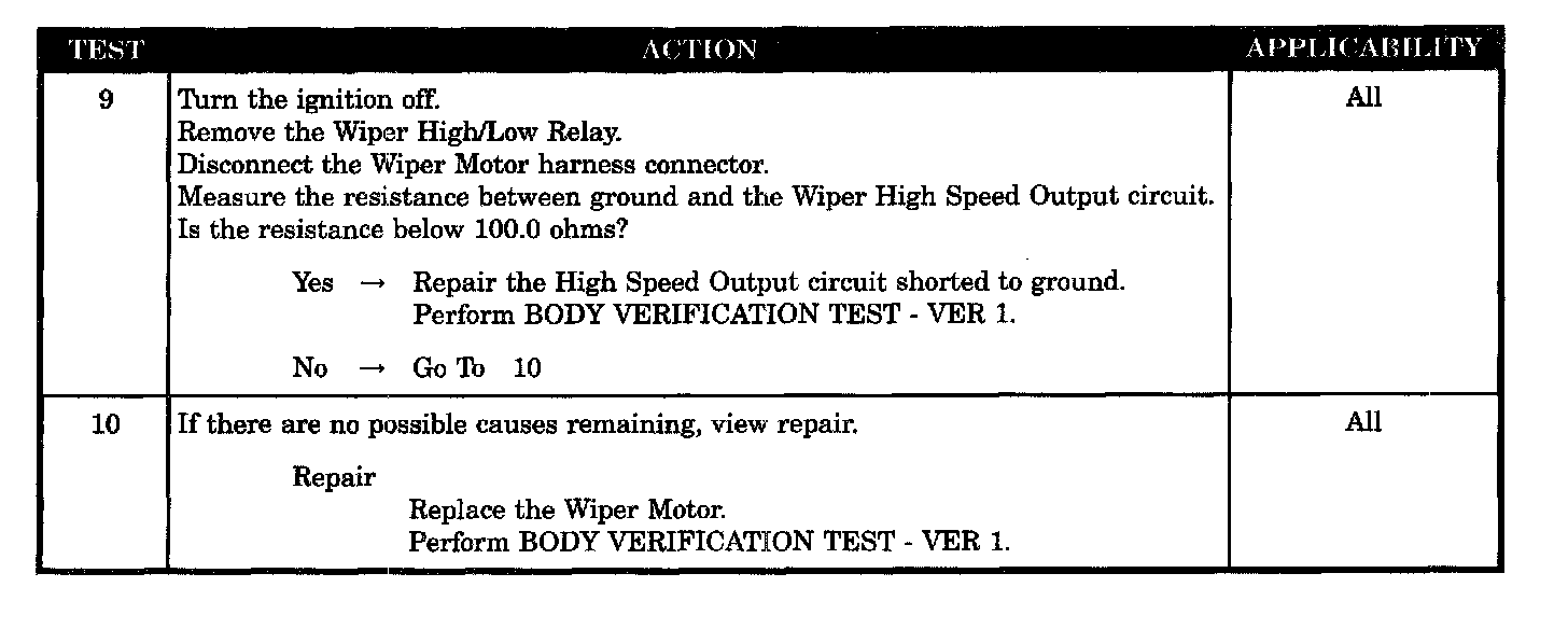 - Wiper high/low relay control circuit shorted to voltage