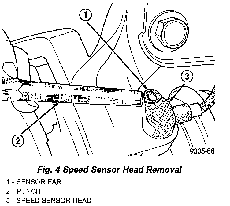 CAUTION: If speed sensor head locating pin has seized to the steering knuckle, do not attempt to remove speed sensor head by grasping with pliers and turning. This will damage the speed sensor head. Use only the following procedure.