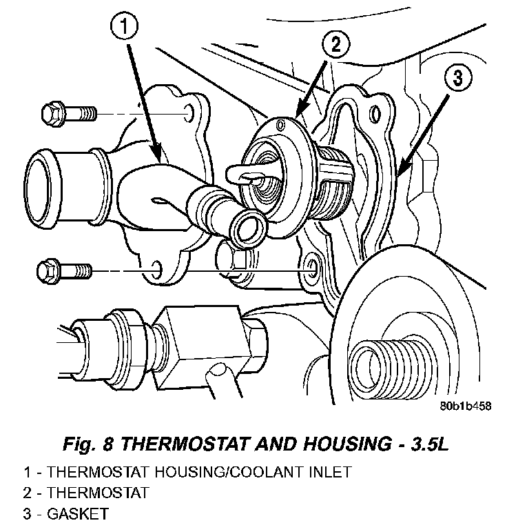 6. Remove thermostat housing bolts.