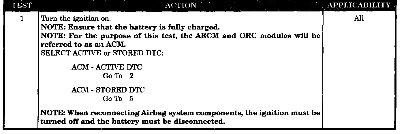 With the ignition on the ACM monitors the resistance of the Driver Squib 1 circuits.