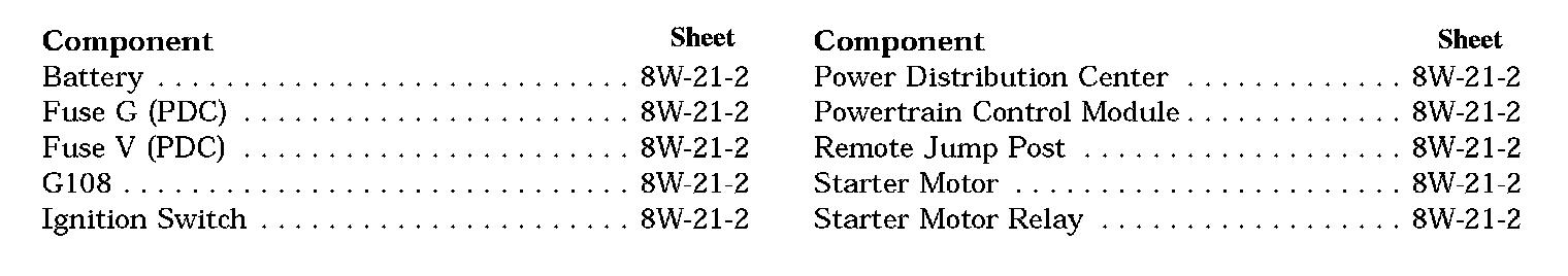 Starting System Component Index: